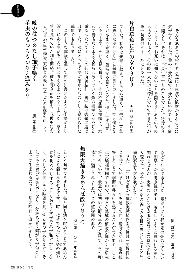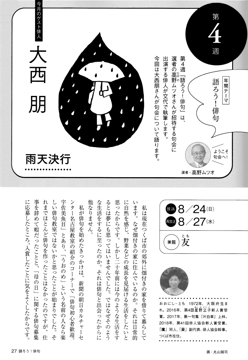 2025年7月20日発行『NHK俳句』2025年8月号 通巻365号 語ろう!俳句 「雨天決行」(P.27-29)